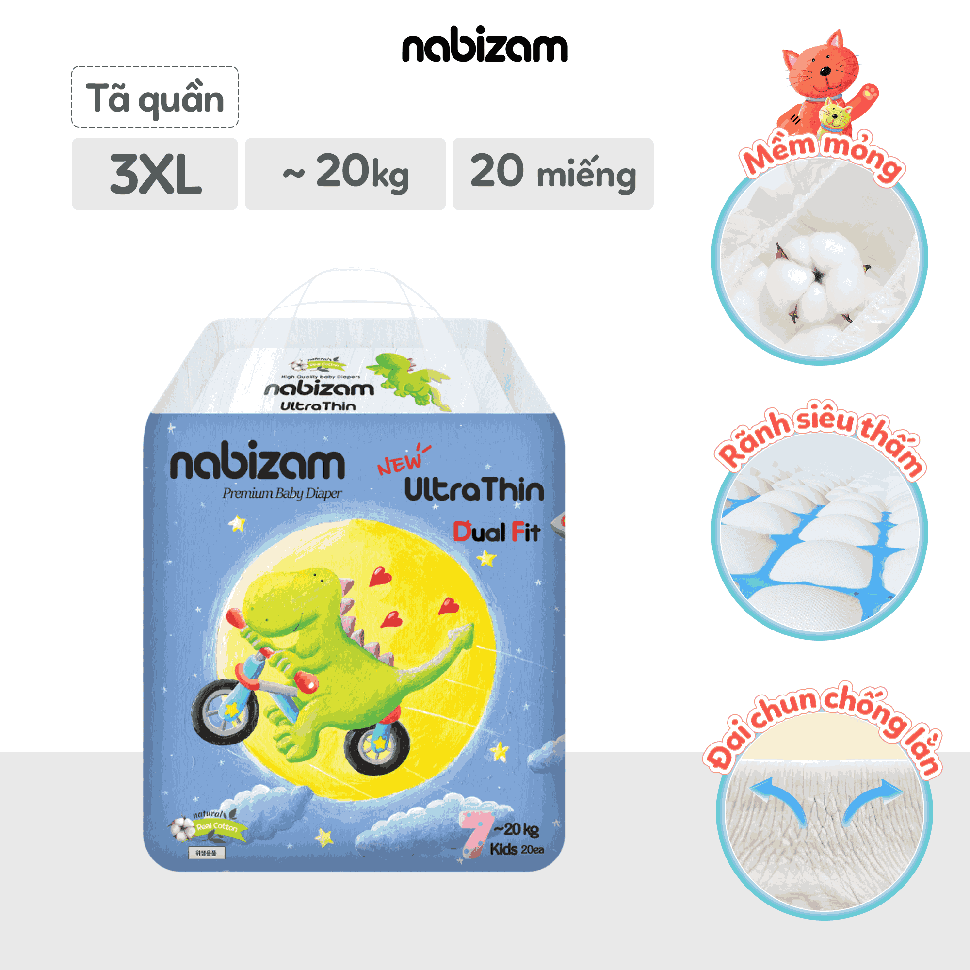 Tã quần Nabizam UltraThin size 3XL - 20 miếng, phù hợp với bé từ 20 ~ 25kg